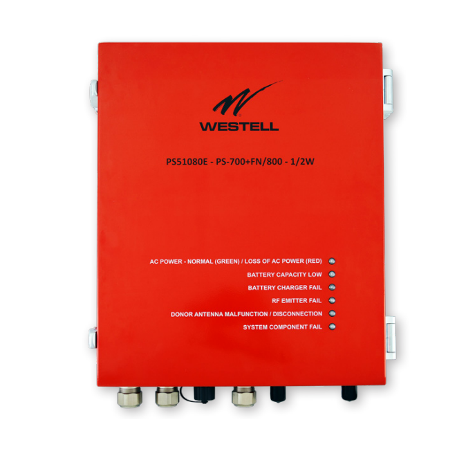 80 dB gain, 27 dBm, Public Safety SMR 800/FirstNet UL2524 Listed. Kit includes Battery Cabinet and 2 12V Batteries providing 12 hrs.